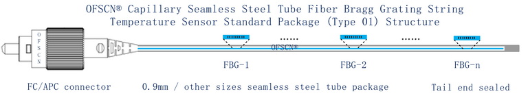 The structure of this sensor is based on the OFSCN® 300°C Fiber Bragg Grating Temperature Sensor. Here are the key technical characteristics: